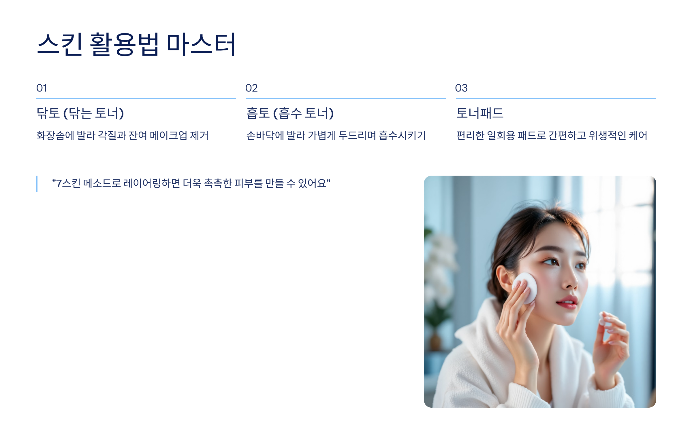 💡 5. 스킨 활용법: 닦토, 흡토, 그리고 '토너패드'