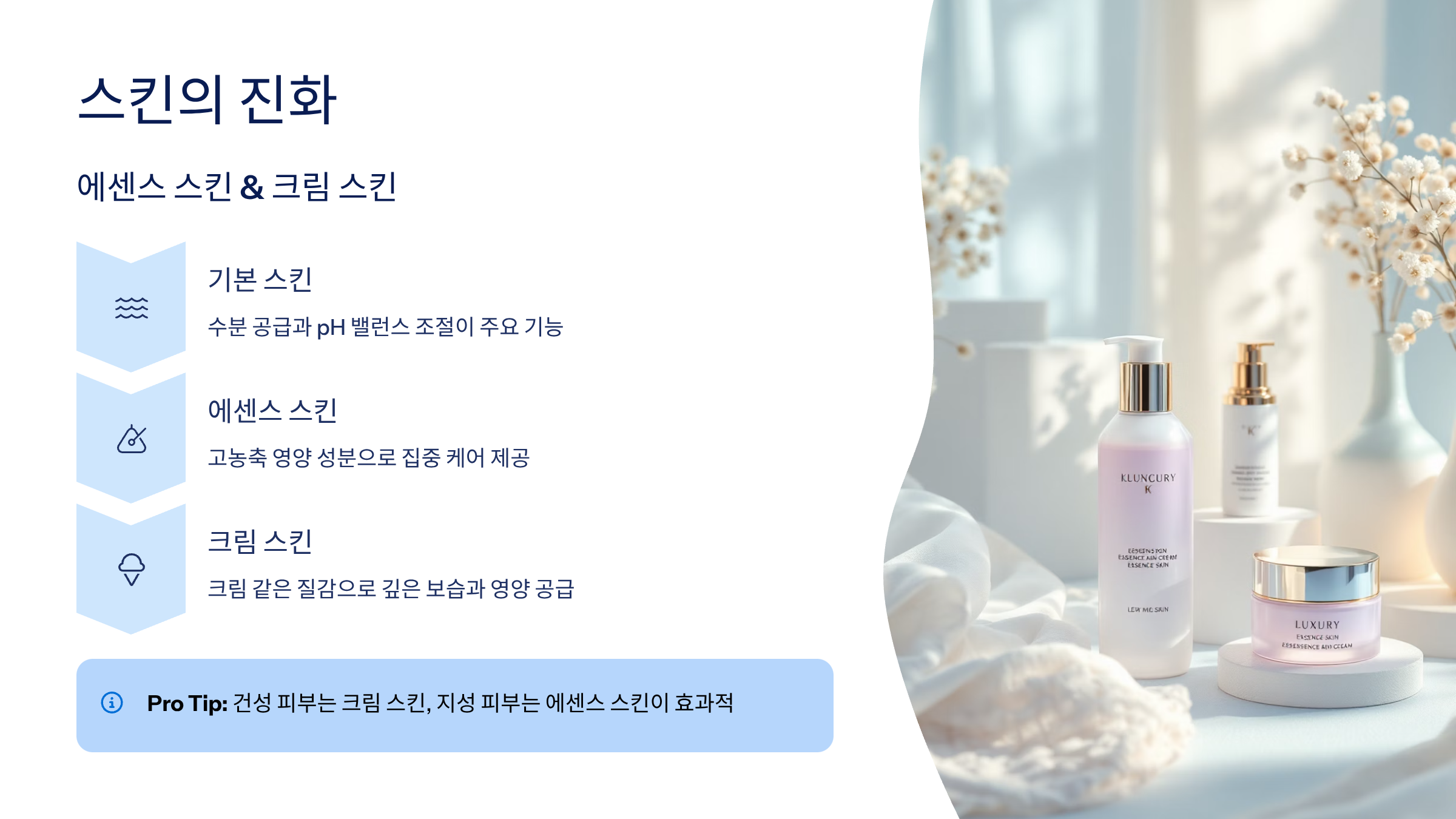 💧 3. 스킨의 진화: 에센스 스킨 & 크림 스킨